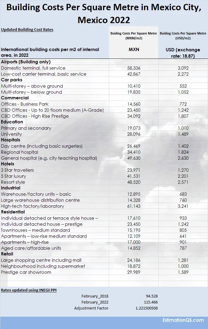 Building Costs Per Square Metre In Mexico Turner Townsend Statistics Estimation Qs
